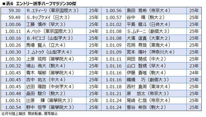 ■表6 エントリー選手ハーフマラソン30傑[/caption] RECOMMENDED おすすめの記事