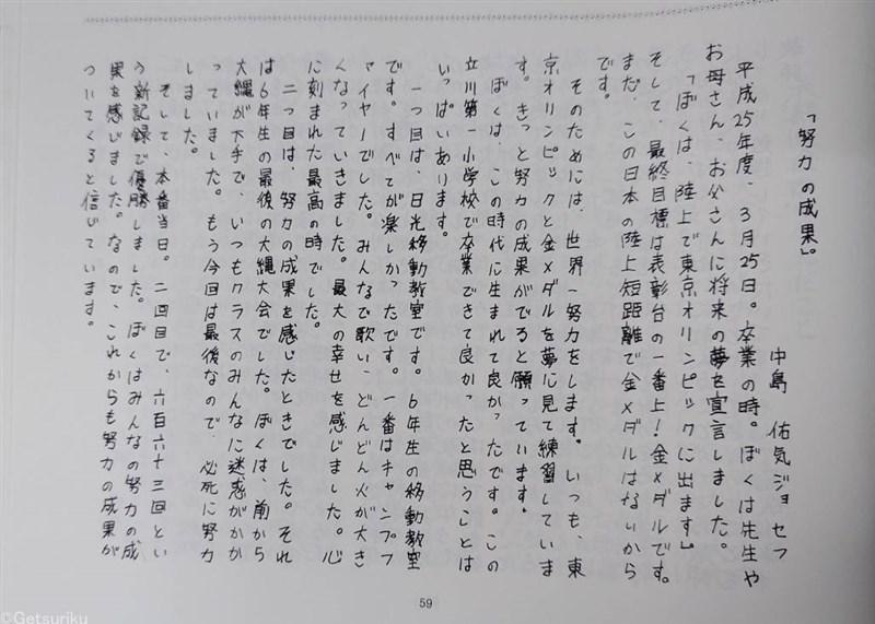 中島佑気ジョセフに立川市市民栄誉表彰「地道に一歩ずつ頑張ることが大事」母校凱旋に熱烈歓迎、卒業文集に書いた夢明かす