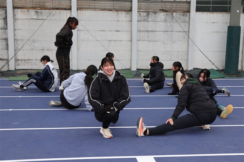 今も土手のトラックを主な練習場とし、校内にあるトラックは70mの直走路のみ。土手はサッカー部や野球部、校舎内はテニス部とスペースを共有。決して恵まれた環境ではない。